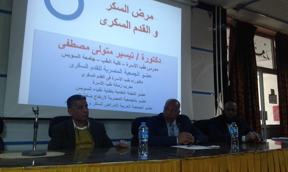 تفعيلا للدور الخدمى والتطوعى والوطنى لقطاع البترول فى مصر والذى يمثل غاية الأهمية لمنظومة الأمن القومى المصرى الداخلى شارك اليوم الأثنين الموافق 13يناير 2020 قطاع البترول متمثلا فى شركة السويس لتصنيع البترول برعاية المهندس محمد أحمد عليوة رئيس مجلس الإدارة والأستاذ رضا رضوان ممثلا عن مجلس الإدارة بندوة طبية تثقيفية للتوعية بمخاطر مرض السكر والقدم السكرى بمركز تدريب السويس لتصنيع البترول حاضر فيها الدكتورة تيسير متولى مصطفى مدرس طب الأسرة بكلية الطب جامعة السويس و الحاصلة على دكتوراة فى طب الأسرة فى القدم السكرى وعضوية الجمعية المصرية للقدم السكرى والأساتذة مدحت حسين ممثلا عن مركز تدريب البترول ، أشرف طه النقابى السابق.