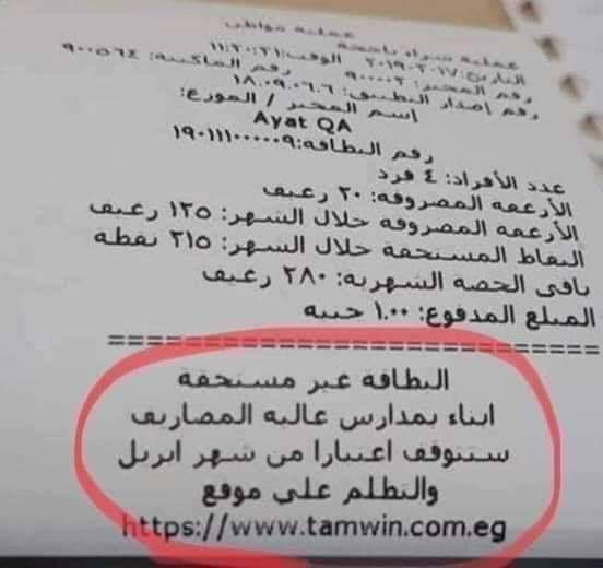 يلاحظ أن من لن يتقدم بتظلم وهو منذر ببون الصرف بأن بطاقته موقوفه وقف مؤقت وغير سارى سيكون مصير بطاقتة التموينية الوقف النهائى أيضاً بداية شهر أبريل ...