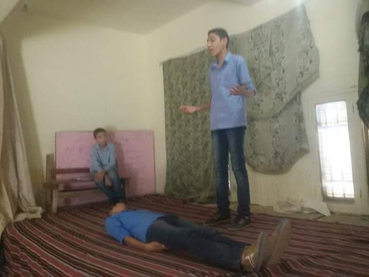 وأيضا خلال الزيارة لمدرسة الثورة شد انتباهه مسرحية " معاناة المعلمين مع الطلاب " التي رأى مشاهد حية منها ونوه سيادته إلى المراجعة اللغوية للنص بدقة وشكر هذا العمل المتميز من أبناء مدرسة الثورة .