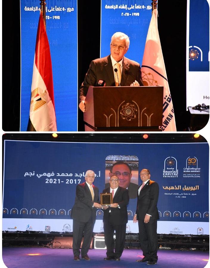ومن جانبه، أكد د.أيمن عاشور أن احتفال اليوم بمرور 50 عامًا على تأسيس الجامعة، التي بدأت باسم جامعة حلوان، وأصبحت اليوم جامعة العاصمة، يمثل تقديرًا لمسيرة حافلة بالإنجازات الأكاديمية والعلمية وخدمة المجتمع، مشيدًا بدور الجامعة في دعم التنمية وبناء الإنسان المصري، كما أبرز إسهامات خريجيها من وزراء ومسؤولين في تعزيز مكانة الجامعات المصرية وخدمة المجتمع، مؤكدًا أن هذا الاحتفاء يعكس جهودًا متراكمة أسست لمستقبل واعد.