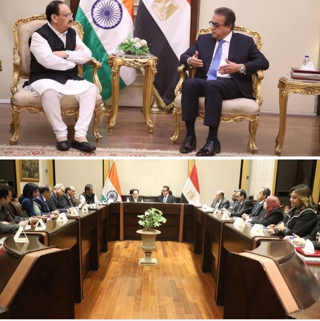 استقبل الدكتور خالد عبدالغفار، نائب رئيس مجلس الوزراء ووزير الصحة والسكان، نظيره الهندي السيد جاجات براكاش نادا، وزير الصحة والكيماويات والأسمدة، لتعزيز التعاون في مجالات الرعاية الصحية، وعلى رأسها تبادل الخبرات في صناعة الأدوية واكتشاف فرص الاستثمار المشتركة بين البلدين.