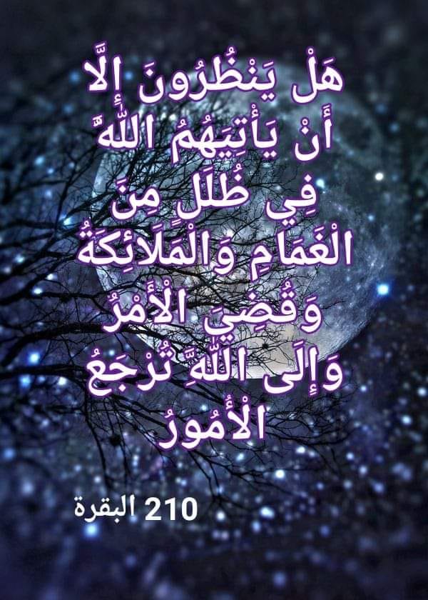 يحدِّثنا القرآن العظيم عما سيحدث يوم القيامة بتجلِّي الله تعالى للوجود تجلياً يجيء على كل ما فيه فيزول الوجود ويتلاشى ولا يبقى منه شيء. وهذا التجلِّي الإلهي للوجود هو ما بوسعنا أن نتبيَّن ذكره متوارياً من وراء كلمات الآيتين الكريمتين التاليتين: (هَلْ يَنْظُرُونَ إِلَّا أَنْ تَأْتِيَهُمُ الْمَلَائِكَةُ أَوْ يَأْتِيَ رَبُّكَ أَوْ يَأْتِيَ بَعْضُ آيَاتِ رَبِّكَ يَوْمَ يَأْتِي بَعْضُ آيَاتِ رَبِّكَ لَا يَنْفَعُ نَفْسًا إِيمَانُهَا لَمْ تَكُنْ آمَنَتْ مِنْ قَبْلُ أَوْ كَسَبَتْ فِي إِيمَانِهَا خَيْرًا قُلِ انْتَظِرُوا إِنَّا مُنْتَظِرُون) (158 الأنعام)، (هَلْ يَنْظُرُونَ إِلَّا أَنْ يَأْتِيَهُمُ اللَّهُ فِي ظُلَلٍ مِنَ الْغَمَامِ وَالْمَلَائِكَةُ وَقُضِيَ الْأَمْرُ وَإِلَى اللَّهِ تُرْجَعُ الْأُمُورُ) (210 البقرة).